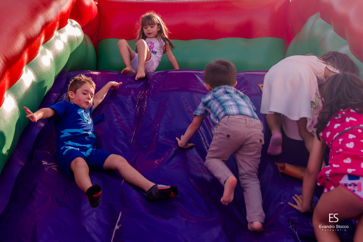Aniversário de 5 Anos do Túlio com toda sua turminha brincando e correndo sem parar, o dia éra de sol, mas que bom que as mamães aguardavam na sombra enquanto esta galera torrava as calorias nos brinquedos.
